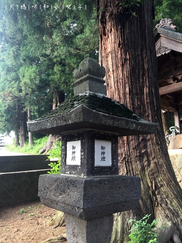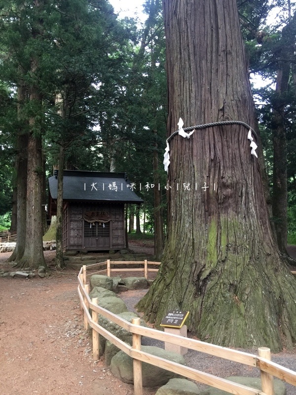啊!出現了!在主神社的旁邊,出現一顆更大的杉木,綁著那個白色的祈福物品,下面又一堆解說牌,肯定他就是第一顆星了吧!
