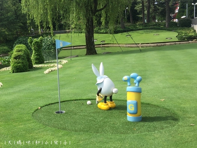 暫時PASS明日世界,往城堡中線走,愛打高爾夫球的阿公及臭狗,互相調侃沒眼睛也是可以推杆的耳兔蛋,ㄝ!等下,那不就是耳兔蛋找鑰匙遊戲的第一顆蛋嗎!