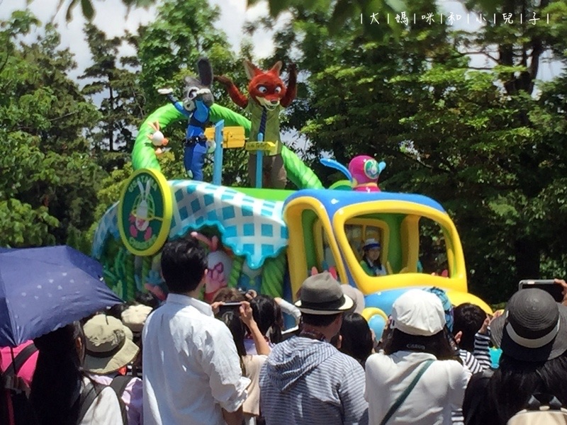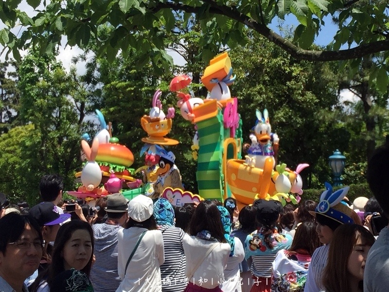 人潮陸續開始大量聚集,可見有遊行要開始了,果然是耳兔蛋日間大遊行,所有兔子角色都上場了,當然包含兔子警官!果然有等小人卡通看到一定量,對人物有基礎認識才來迪士尼比較對,不認識的花車經過時,小人寧可摳手指也不是太有興趣擠著看。