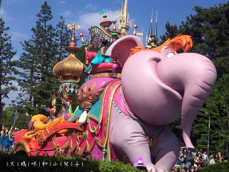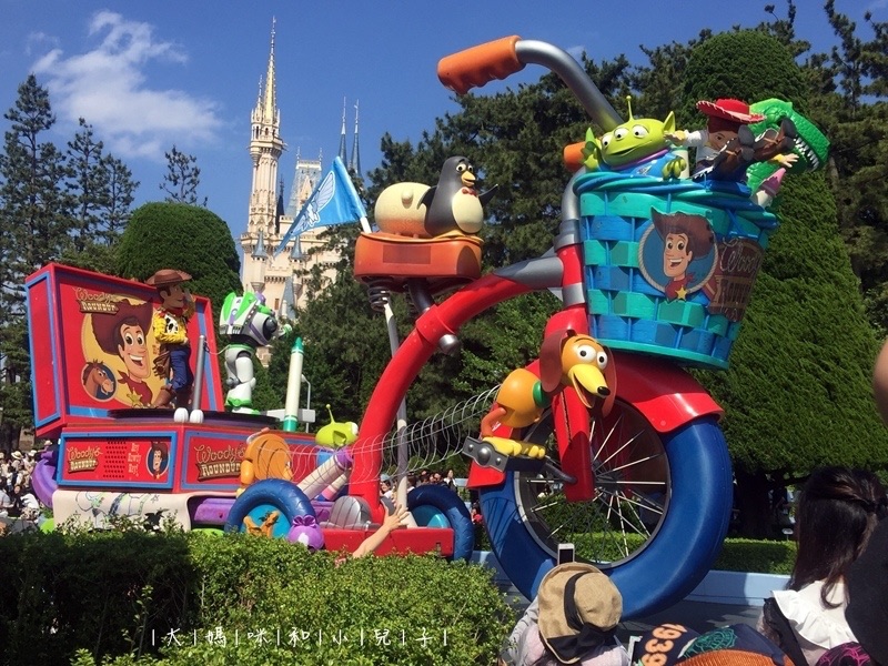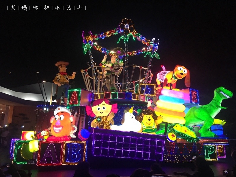 休息許久之後,繼續完成下午的計畫,小設施大致上都玩完了,接下來就是與熱門設施的苦戰,還有跟大家一起逛逛昨天已經玩過的左半部。想不到一出來又遇上了日間遊行,顏色鮮明乾乾淨淨,搭配熱鬧的音樂氣氛,怎麼那麼好看哪!