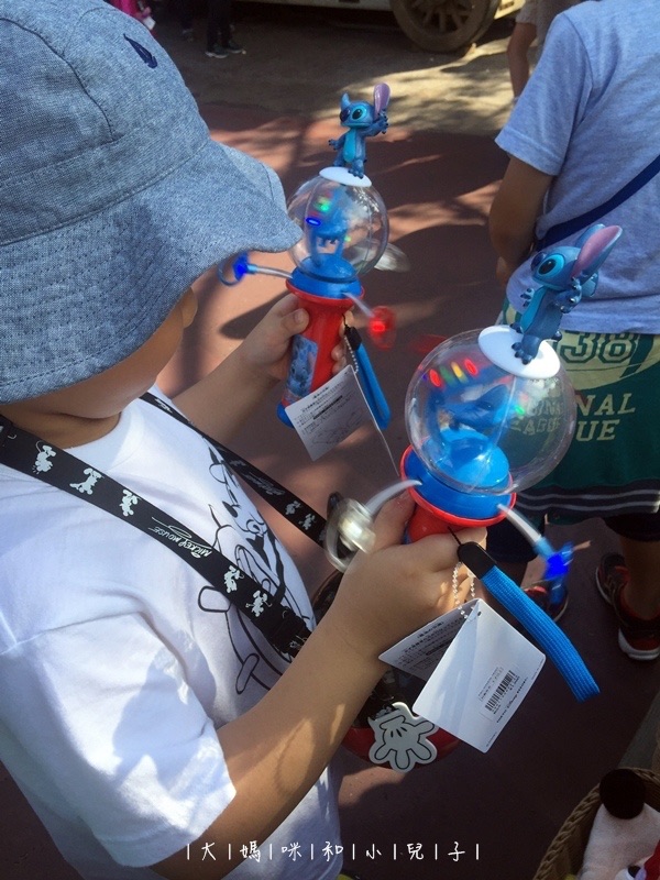 在迪士尼最常上演的小人崩潰大戲,就是這種東西了!滿街都是,有給買的孩子通常都會到沒有的孩子面前,兩眼直直然後一直按給他看,對!就是小孩界的嗆蝦行為!當老杯老母的人應該都知道,無法預防,只能祝福大家的孩子心花大開,不會常常卡在這種崩潰人生了。嗯~我們家卡過一次,一個日本孩子拿著會噴水霧的電風扇來眼神嗆蝦,崩潰!