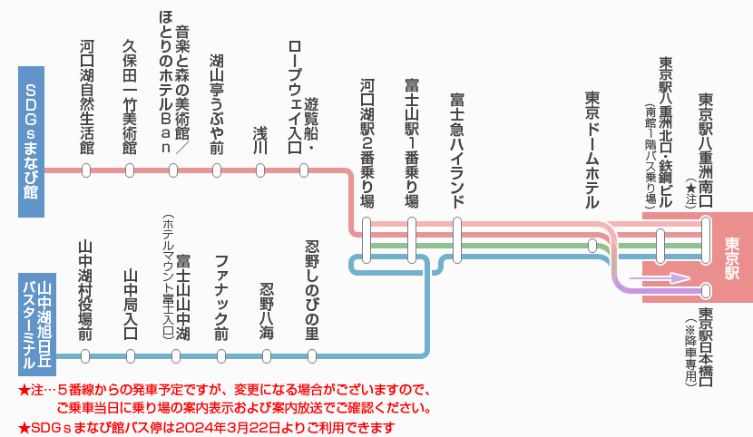 挺完最硬的迪士尼行程,前往東京車站轉巴士往河口湖,Google Map說京葉線直接到東京車站轉富士急行巴士(往富士山駅・河口湖駅・山中湖旭日丘)最順,但不知道為什麼,部落格一面倒全都說要去新宿車站轉?決定試試看,總之順利的話,大約中午就可以抵達河口湖了。