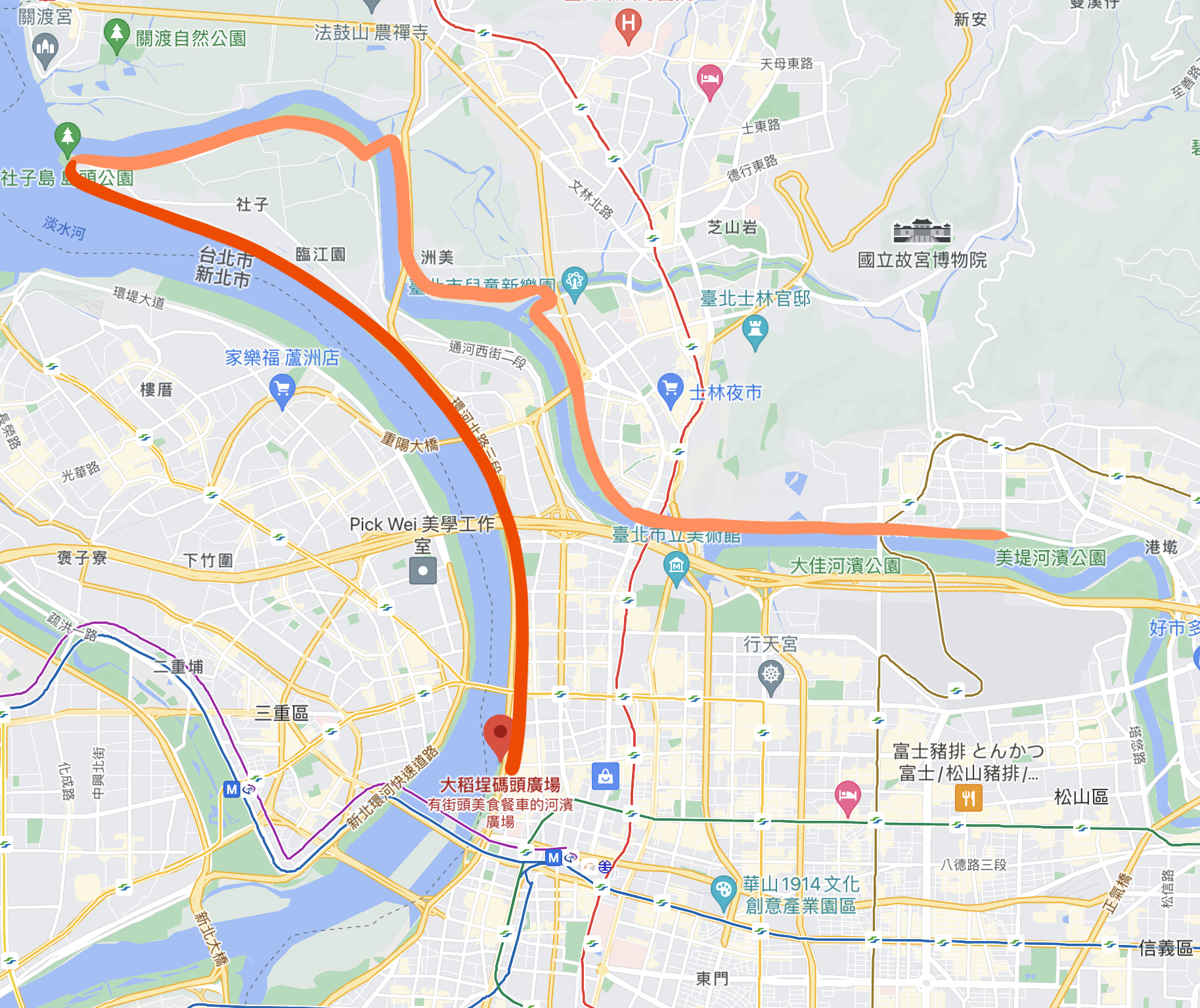 - 路線:美河濱公園到社子島島頭公園,再到大稻埕碼頭廣場。
