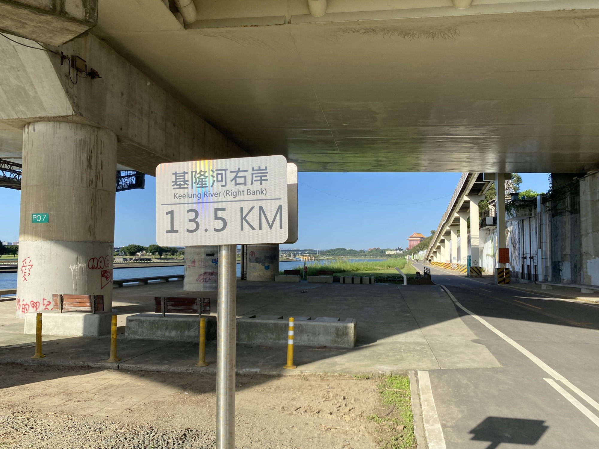 大直橋下是左岸13.5公里,要一路騎完這段基隆河,在社子島與淡水河相會,所以大概能知道今天的距離與運動量。大直橋下是左岸13.5公里,要一路騎完這段基隆河,在社子島與淡水河相會,所以大概能知道今天的距離與運動量。