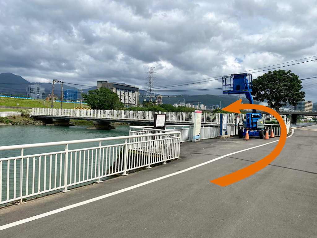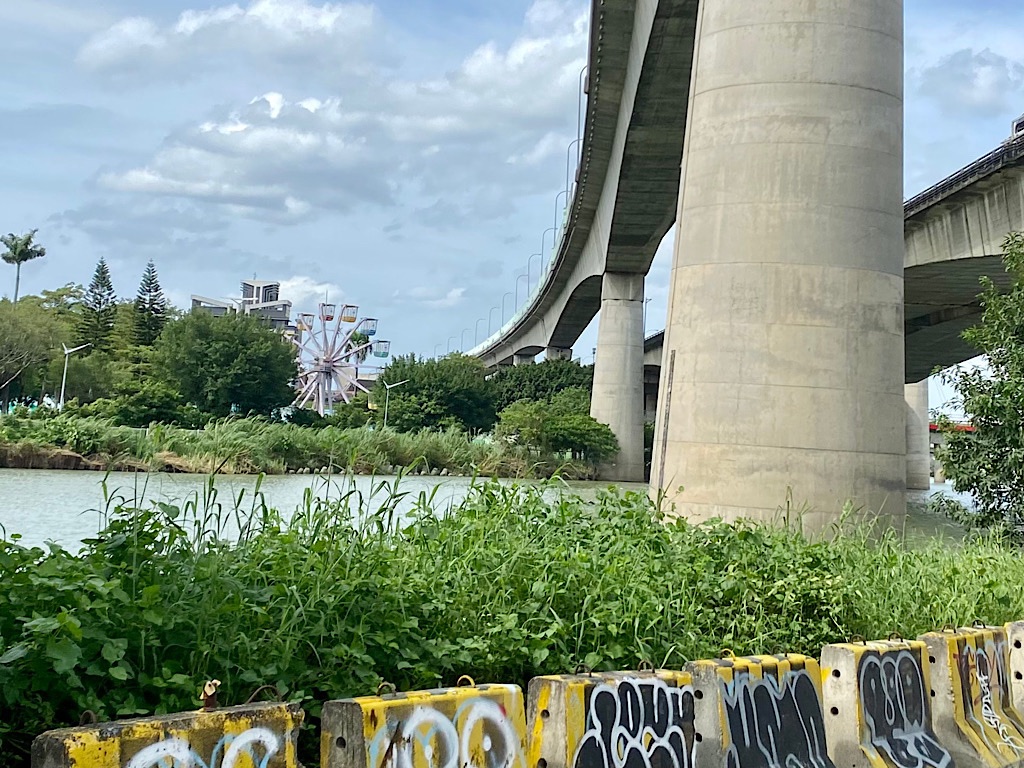 靠左下橋,接著過河到對岸左轉,繼續往北。右邊可以看到兒童新樂園。