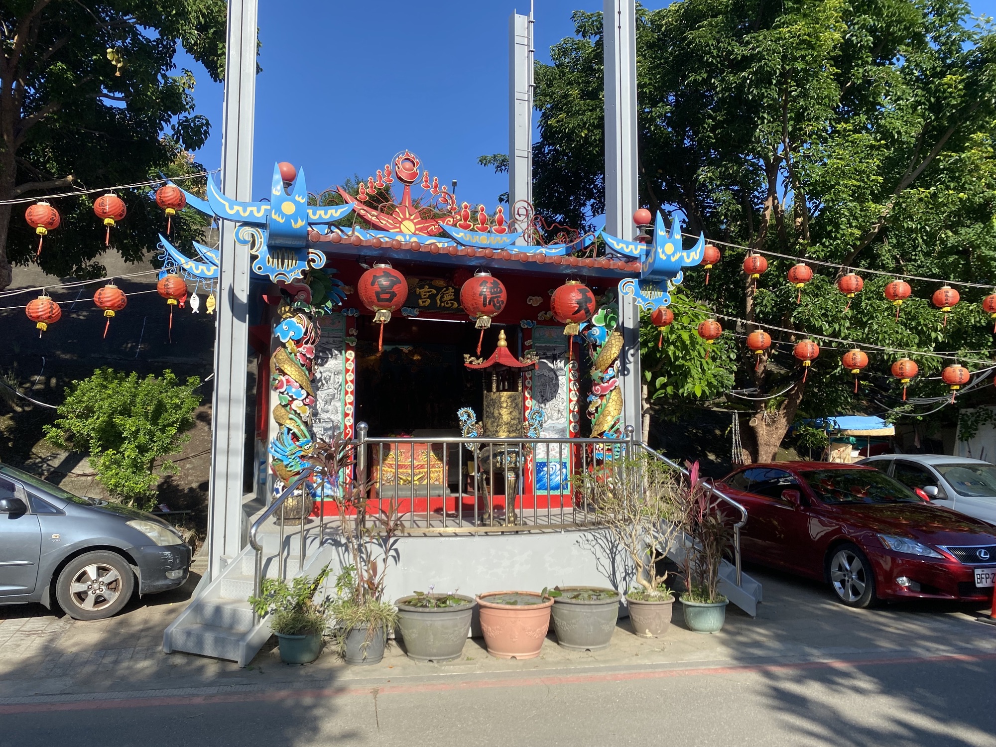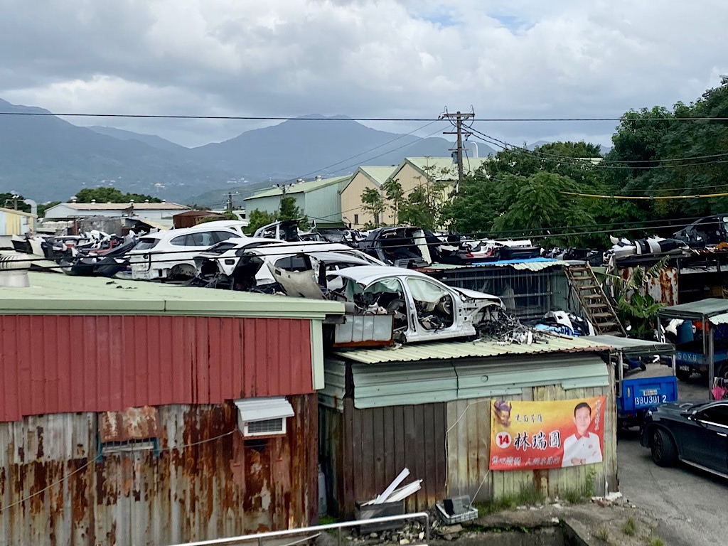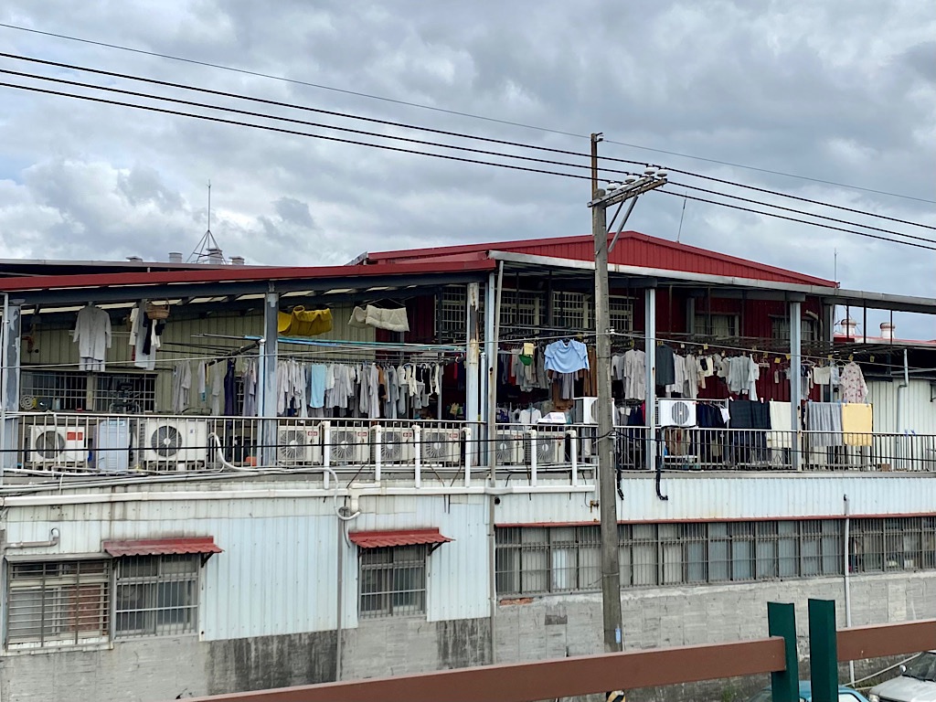 用輪胎、大花盆壓鐵皮屋頂看多了,用廢棄車輛倒是頭一回!實在是太厲害了!然後一間掛滿僧侶衣物的鐵皮屋也是很有趣。希望政府可以找到社子島的解方,改善辛苦的鐵皮屋居住環境。