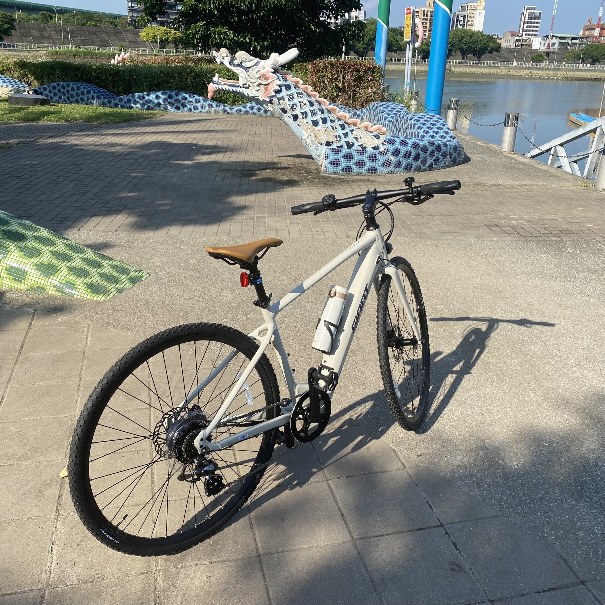 特別要說一下,電輔車真是超適合在市區行動,上下凹凸不平的人行道或自行車道很順,紅燈起步時也不會太卡住被機車騎士討厭,本來以為慢騎平面道路不需要開電輔,結論是開起來真棒,有夠適合。