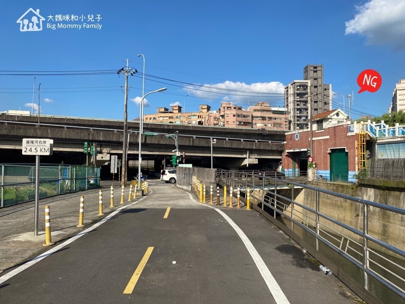 不過這一代岔路多,雖然都有清楚的指標,但對我來說還是有問題,因為「國泰醫院」、「江北大橋」、「禮門街」、「建成路」等這些地點全都是問號,往基隆是該怎麼選?答案是「五堵火車站」,根據Google也根據路人資訊,那是往基隆方向的自行車道好尾好尾端。