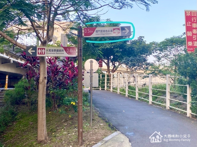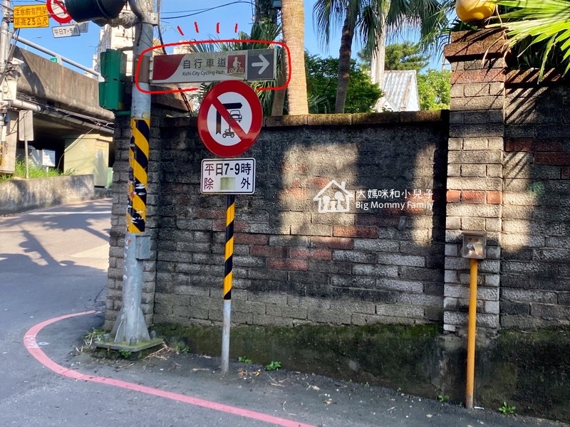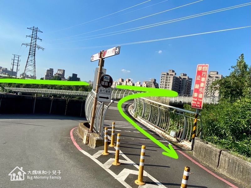 總之我就不小心離開了河濱自行車道,眼前的小路是小路?機車道?自行車道?一時難以分辨就會走錯,要記得找找路邊的標示,還好幾乎各個大小路口都有,繞幾個彎就能順利接回自行車道。
