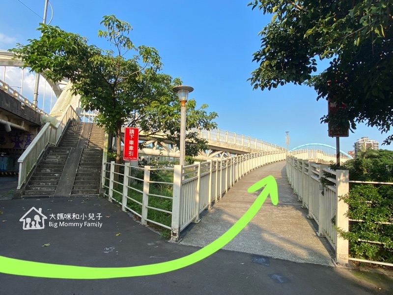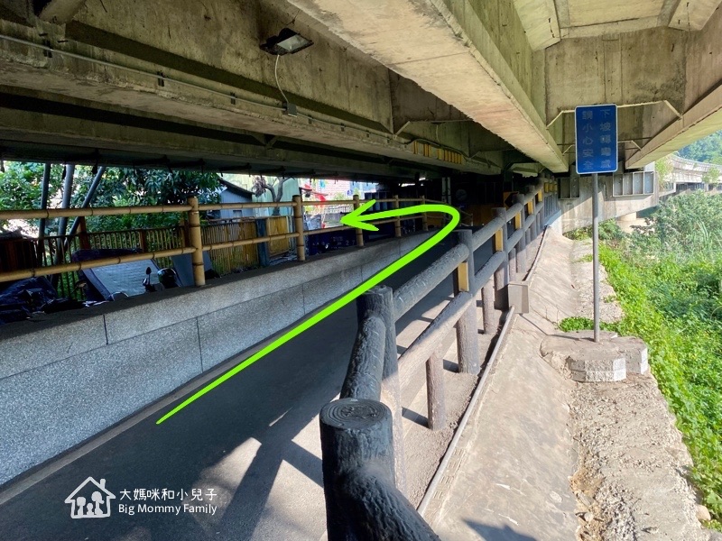 不過也不是走不通,只是要注意看指標繞回自行車道,其實剛剛應該要上去旁邊的牽引道,上橋過河。