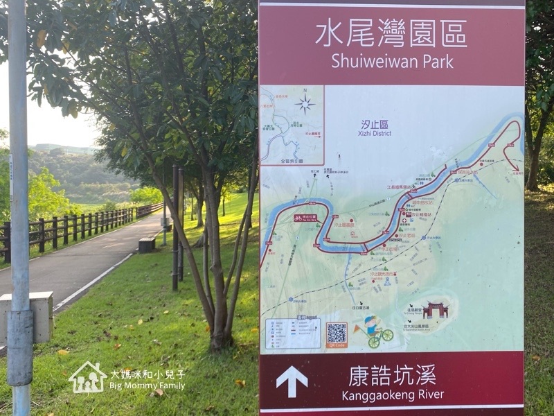 新北市的地圖牌下方,都有寫幾句這個地方的歷史小故事,水尾灣這一代旅意盎然很漂亮,運動休閒的人也比較多。