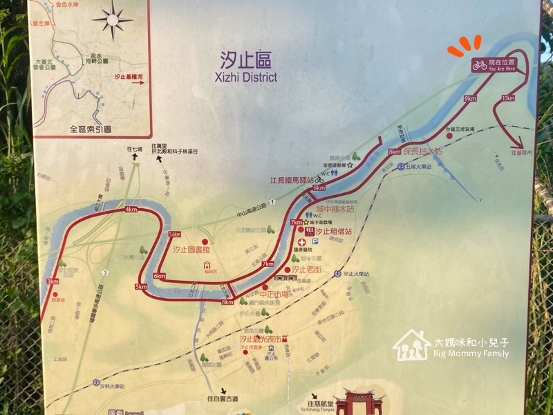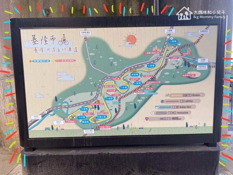 騎過陰暗隧道,看到這張地圖的時候,真的是熱血提升,我真的沿著基隆河騎到基隆了!(撒花)