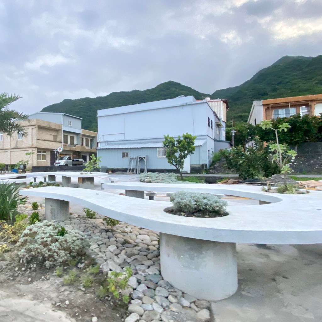 據說是縣政府工程,把這一條綠帶做了很多「美化」,這個大餐桌,雖然好像總是沒人在使用,但讓整體視覺變整齊漂亮了,不再只是雜草荒蕪的景觀。