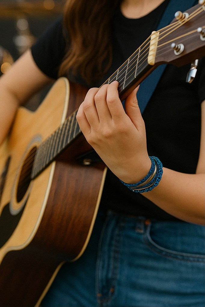 拿一條無彈性的繩子,例如耳機線,測量手腕或腳踝想配戴的位置,選取大於測量值的尺寸,例如量到15.5公分,請選擇16公分,能備註說明實際尺寸更好。