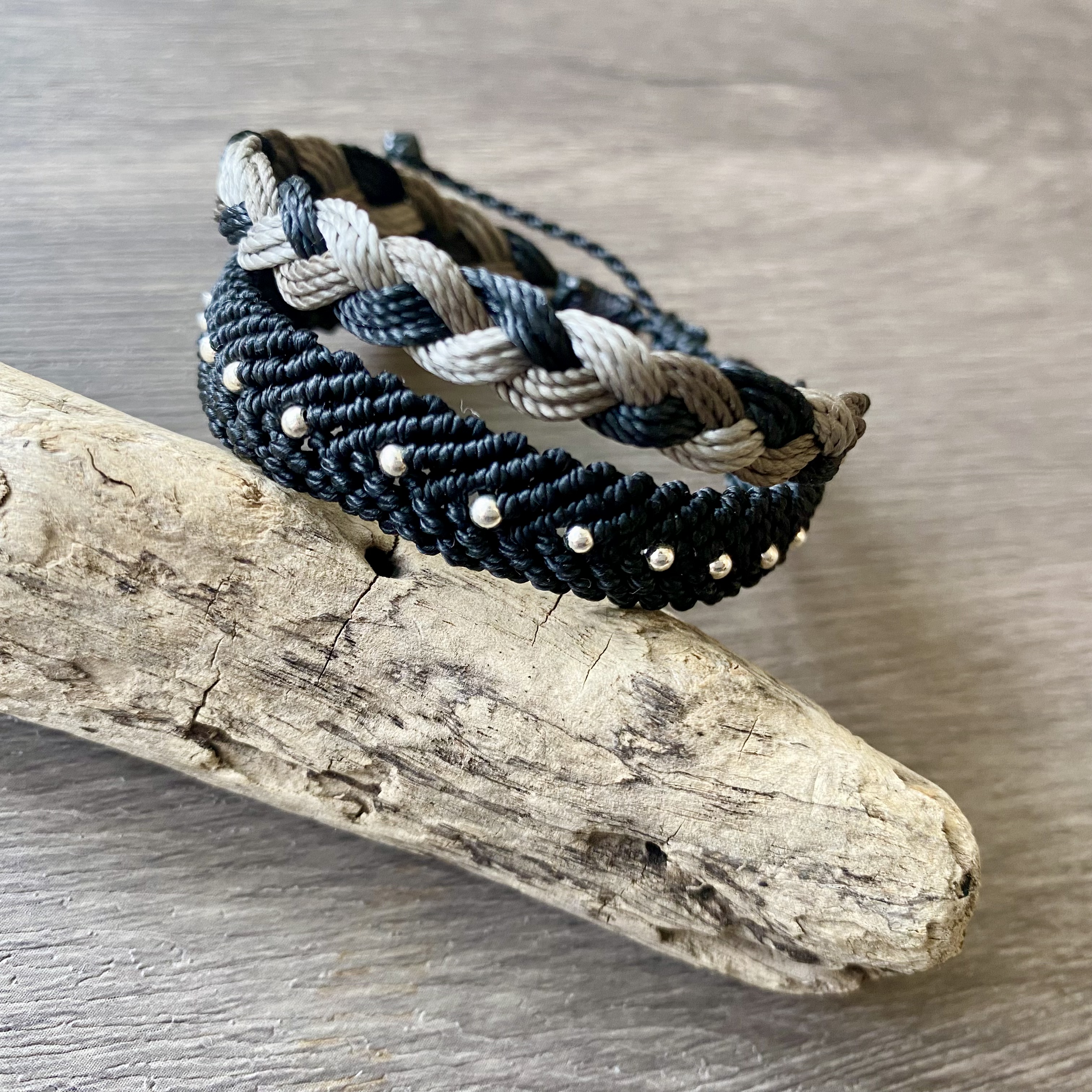 有一天忽然想來個精緻升級,將平織改為人字雙向,並穩定加入小珠子,然後把麻花辮加粗,更襯托男性粗獷的手部線條,覺得更棒了!