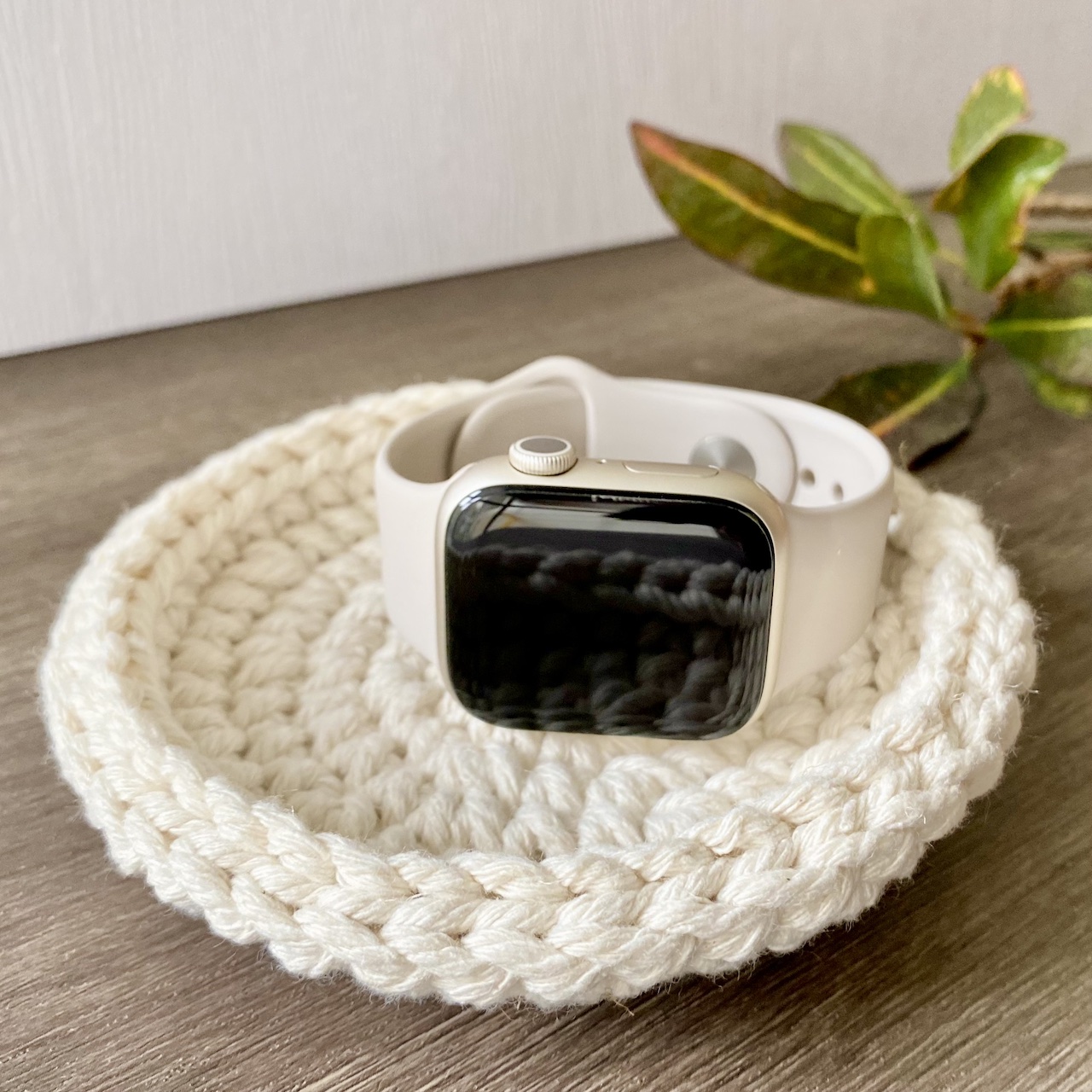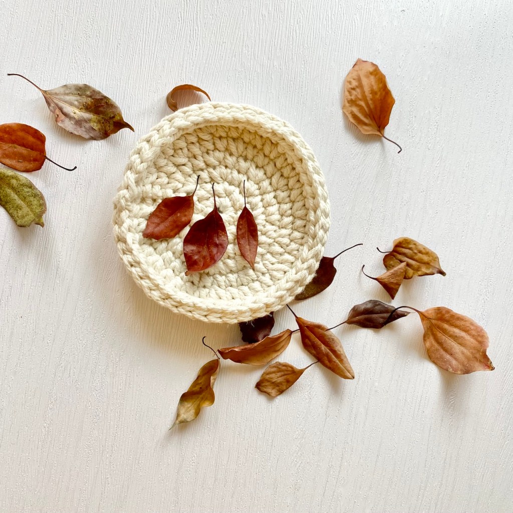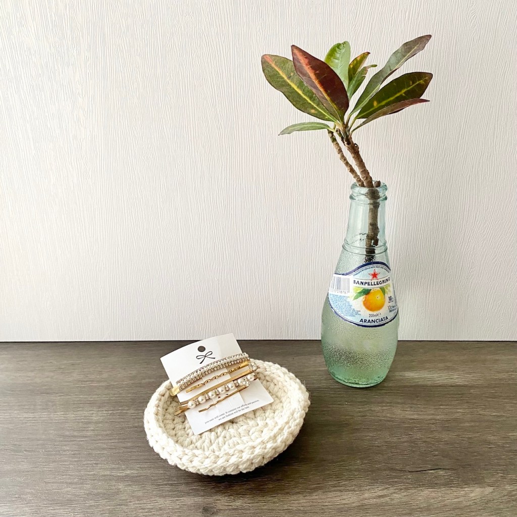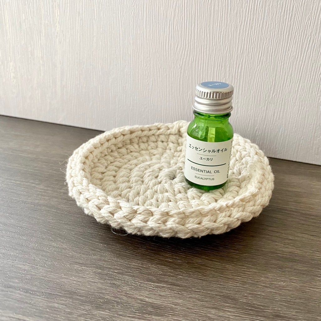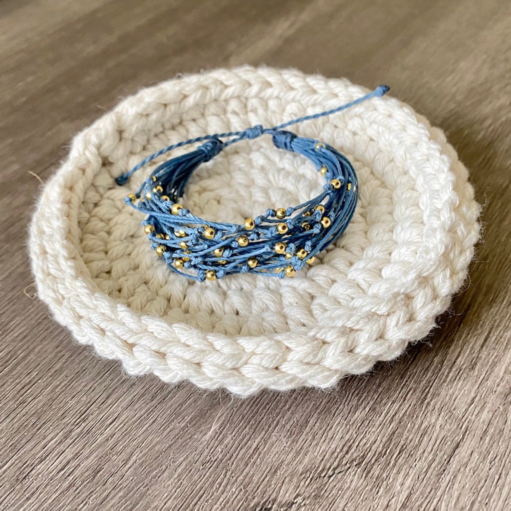 綿線手工厚實編織淺盤,穩定裝盛飾品或小物。