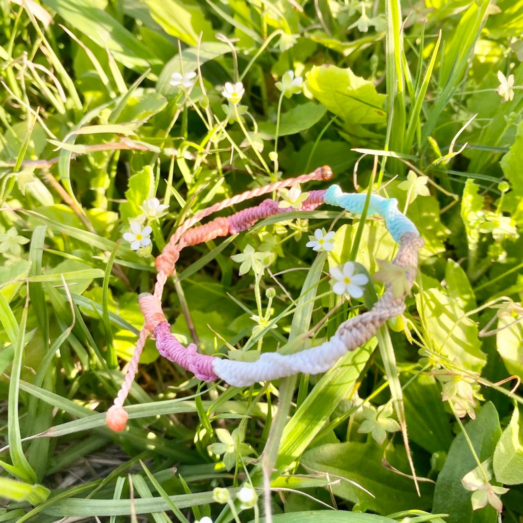 疫情期間突破色彩框架,玩了混色的扭轉與捲捲,意猶未盡,繼續做了小扭轉,覺得很棒,當手環或腳環都很輕鬆自在!